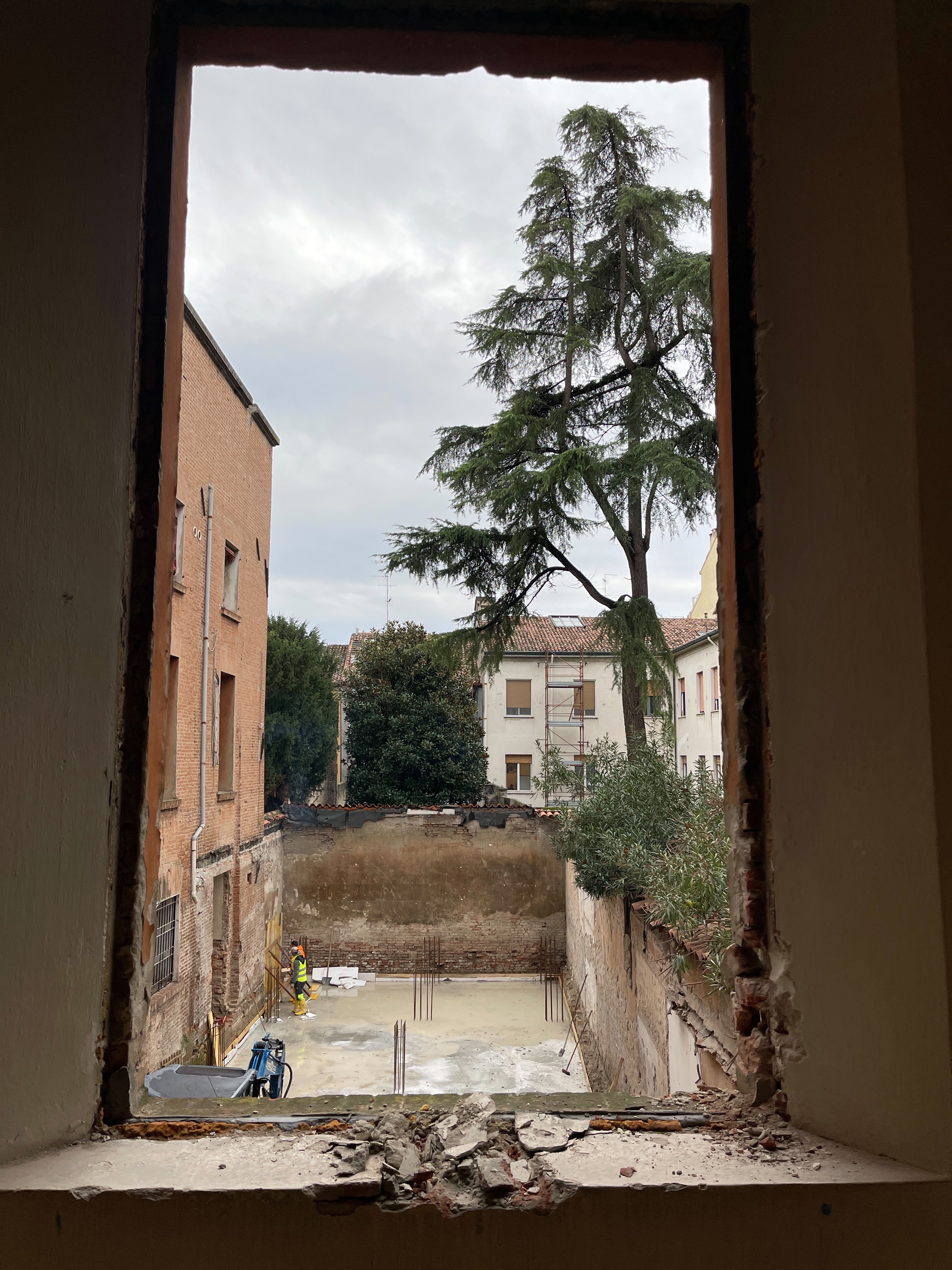 Riqualificazione del cortile interno, con rifacimento scala e installazione ascensore montacarichi